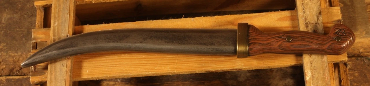Its handle has a rich wooden texture with tarnished gold details. Made of our unique Calimacil foam, this dagger will remain safe even after years of use, and its realism makes it a perfect piece for historical reenactment as well as LARP.