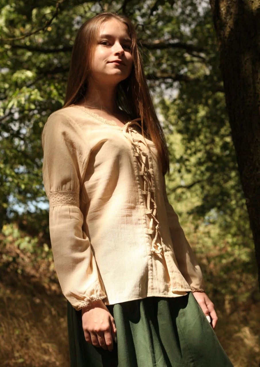 Perfect for all Larp, Banquets, SCA, Stage & Film Productions, Weddings and Historical themed events, this historically inspired Medieval Blouse with Lace detailing is sure to become a welcomed addition to your Larp wardrobe.