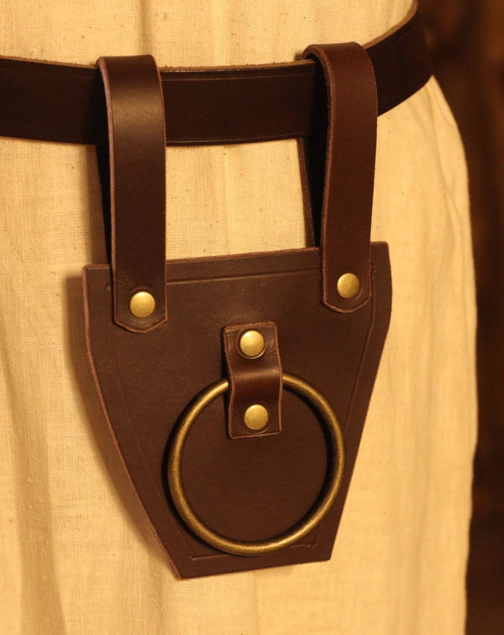 The shaft is simply hung through a metal ring and the holder can be attached to a belt up to 7 cm wide. The metal ring has an inner diameter of 6cm.