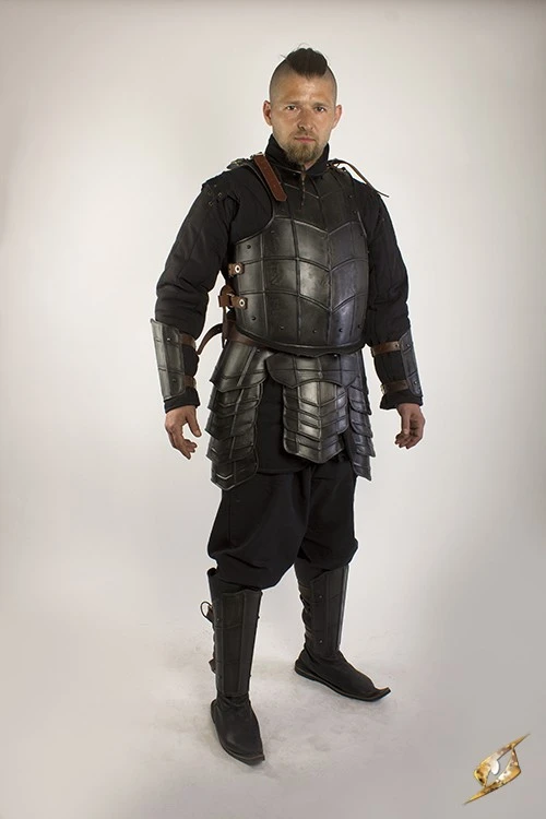 Intimidation. It’s your main form of weaponry while facing the heroes, because it gives you full control. When your enemies fear you, they are more likely to make fatal mistakes. Plate armour became more popular as firearm technology became more prevalent during the 13th centuryHistorically designed with sculpted ridges to provide reinforced protection and to deflect attacks on a chaotic battlefield¶Made from 1mm/19 gauge thick mild steelRolled edges with no sharp edgesStraps and fittings made from top-grain leatherHand made, welded pieces for maximum durabilityEpic Armoury Dark oxidization resistant coating¶Epic Armoury Dark products are specially treated to resist rust, but should still be treated with oil and kept in dry storage. All our metal armours contain leather parts that need regular maintenance using leather-care products to keep the leather from drying out.¶Cleaning¶If your armour does get wet, it is important that you dry it thoroughly as soon as possible.¶After handling, wearing, or after six months of storage or display, all metal should be wiped with a clean cloth. Lightly oil the clean surface with a quality machine or mineral oil. Alternatively, you can apply a coating of wax to the entire surface of exposed metal. Allow the wax to dry for a couple of hours and then buff it lightly with a soft cloth.¶Rust-Prevention and Removal¶Store your armour is a dry place and check it every couple of months for signs of rust. If any is found, remove it by gently rubbing the affected spot with a mildly abrasive pad dipped in paste wax, oil, or water-displacing liquid.¶Leather Straps and Fittings¶Clean by removing dirt with a hard brush, then gently rub on leather soap with a clean, damp cloth until the leather appears clean. Remove soap with a separate damp cloth to wipe away any soap residue and then use a dry cloth to wipe away any remaining water from the leather.¶You should always condition leather after cleaning, since the soap will have removed some of its natural oils. Treat the leather with mink oil, olive oil, or beeswax polish with a clean cloth, gently rubbing a small amount of oil or polish in circles into the leather. Allow the leather to soak in the oil before wiping the leather with a final clean cloth to remove any excess residue.¶