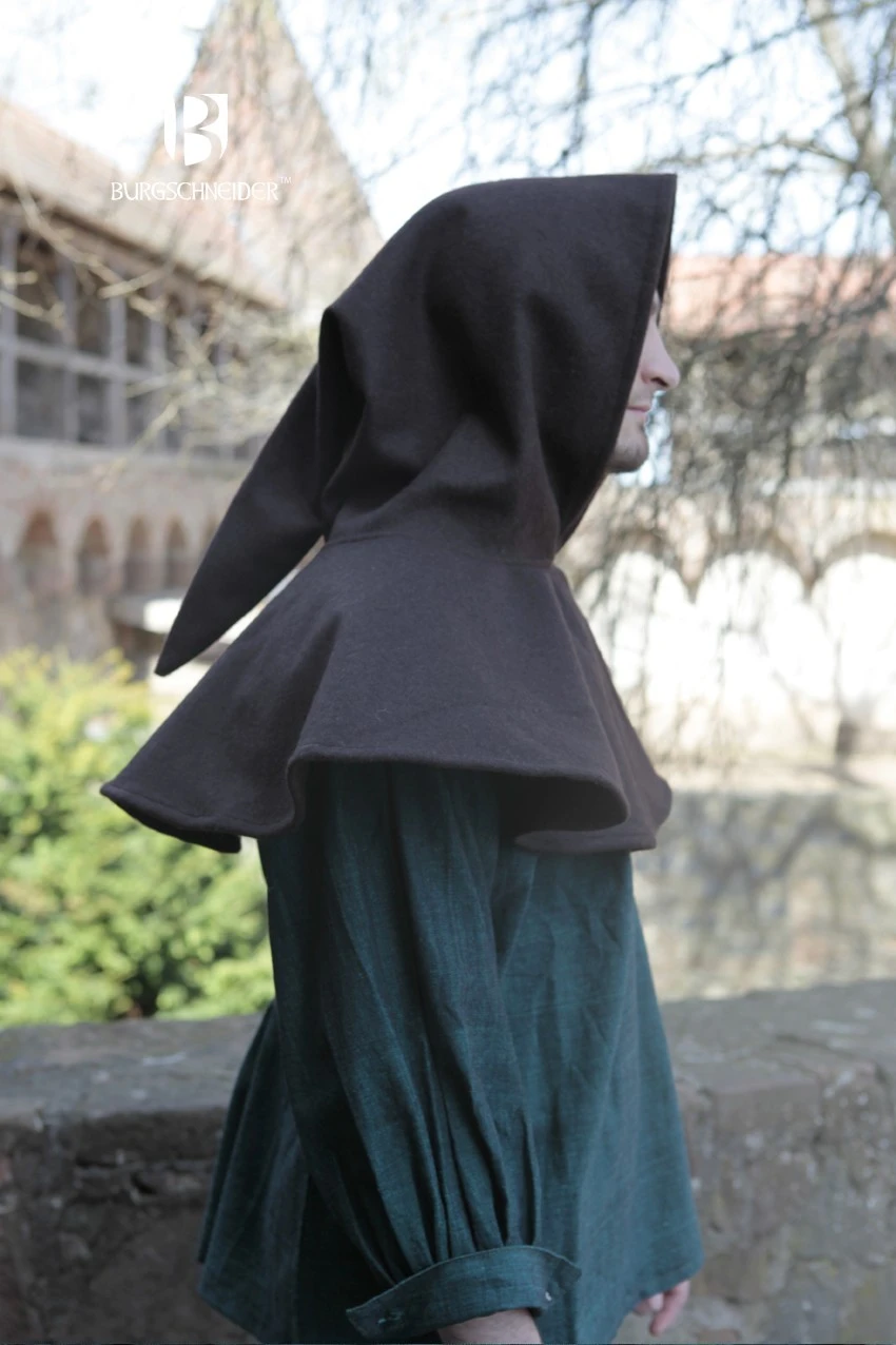 Perfect for adding a practical yet authentic layer to your favourite Larp costumes, this Medieval Liripipe features a long pointed hood and is made from 100% uncombed rough cotton.