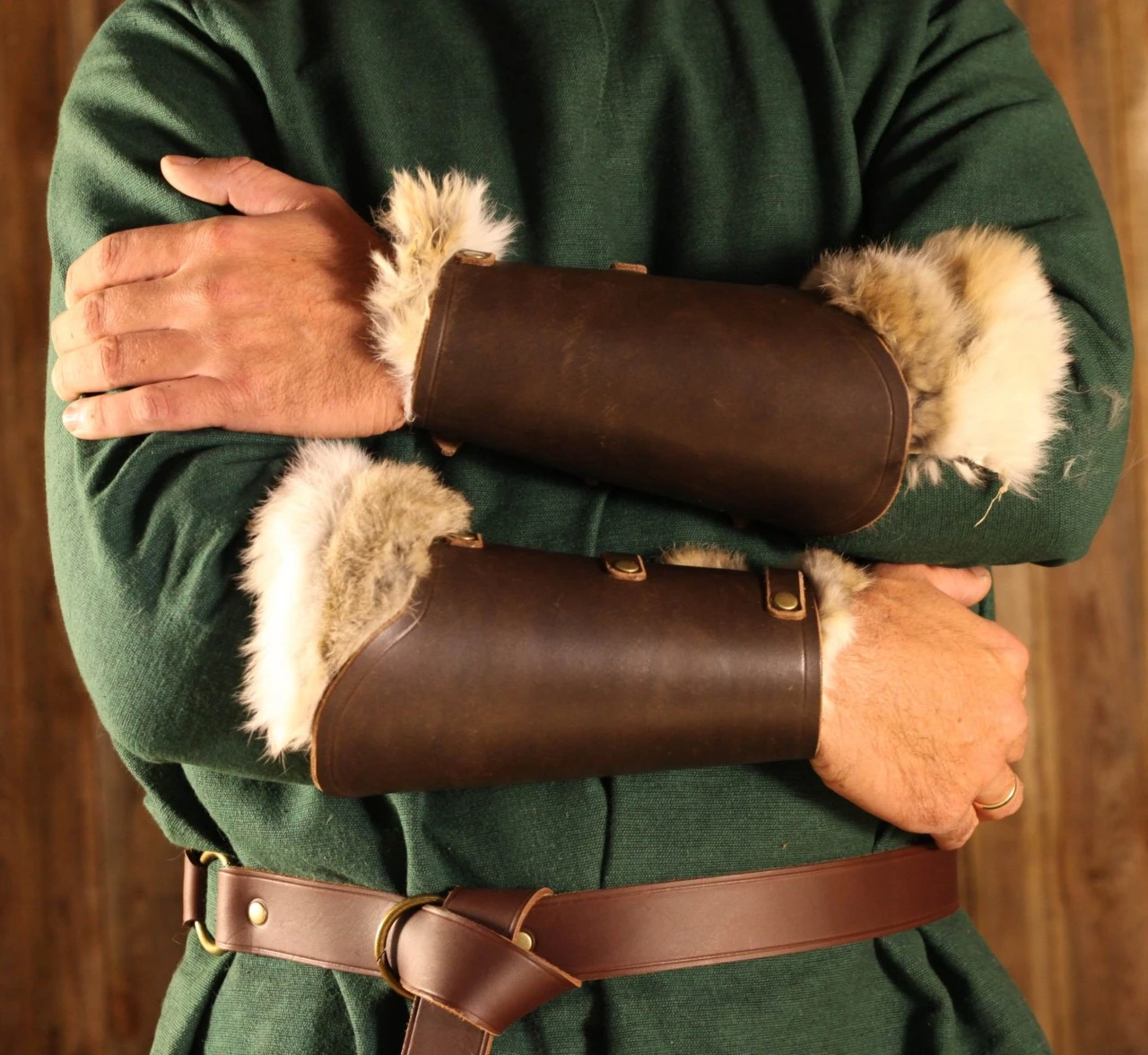 Leather vambraces, fastened with 3 buckles, made of 3.2mm veg tan leather.