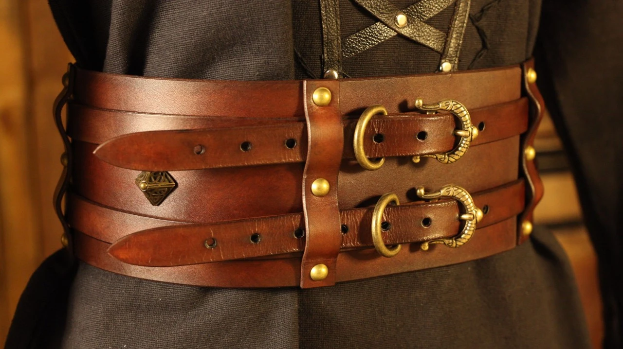 - with two 1.5 inch wide leather belts