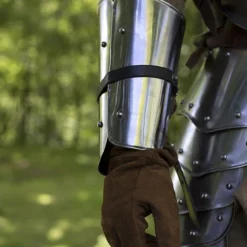 You look upon your leading officer as he makes his way down the line of your fellow soldiers. Your fate and the fate of your entire unit is dependent on this veteran’s word, and you find yourself relieved not to shoulder such a heavy burden.couters and vambraces attached to comfortable leather that enclose and protect the entire forearm. Rolled edges and small ridges around the rim further protect the elbow, making it less likely that you would take a lucky strike from an enemy.Forearm protection like this would have been called a vambrace or forearm guardPlate armor became more popular as firearm technology became more prevalent during the 13th century