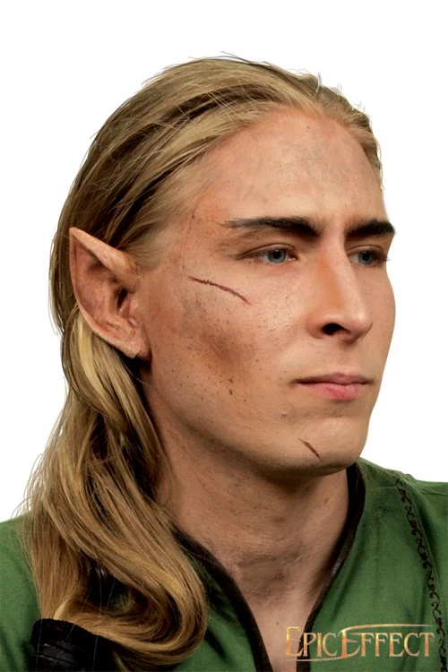 The elven ears are skin-colored and can be painted in any color to match with the make-up. The Epic Effect latex application can be applied with Mastix Spirit Gum and it is easy to remove it. The elven ears are made of 100% latex, which make them look realistic.