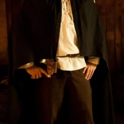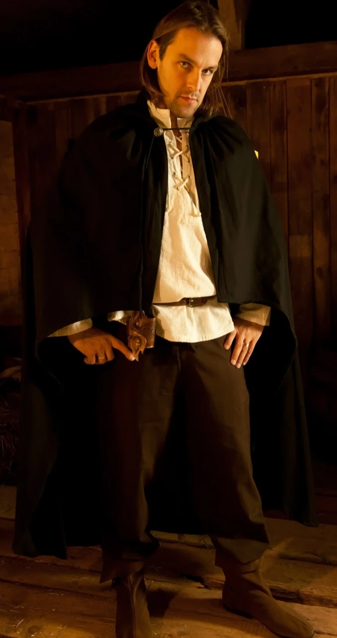 A hooded cloak which fastens at the neck with a cotton tie to allow freedom of movement, whether you’re a warrior riding into battle or a scout trying to stay hidden in a crowd.