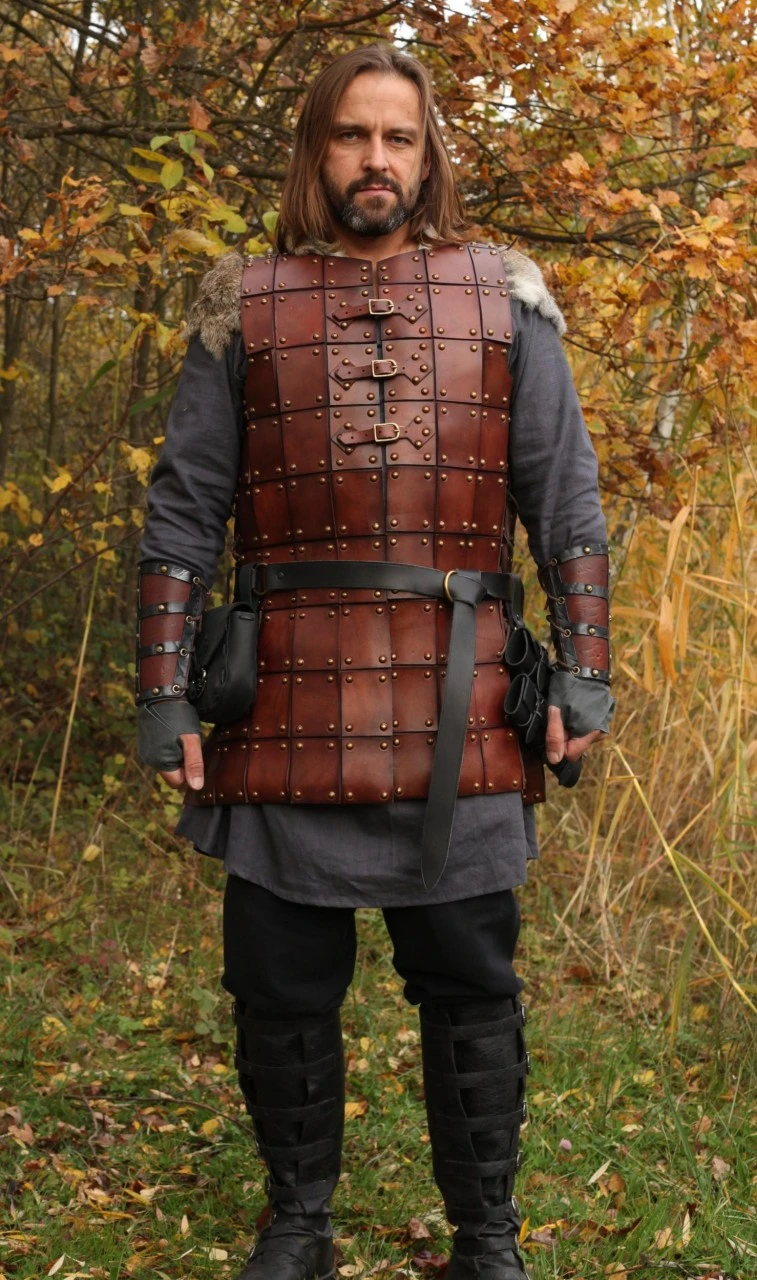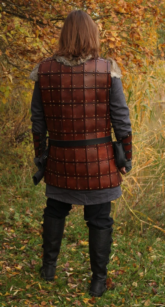 Inspired by Game of Thrones and Vikings, we have created this leather coat of plates with riveted leather panels.