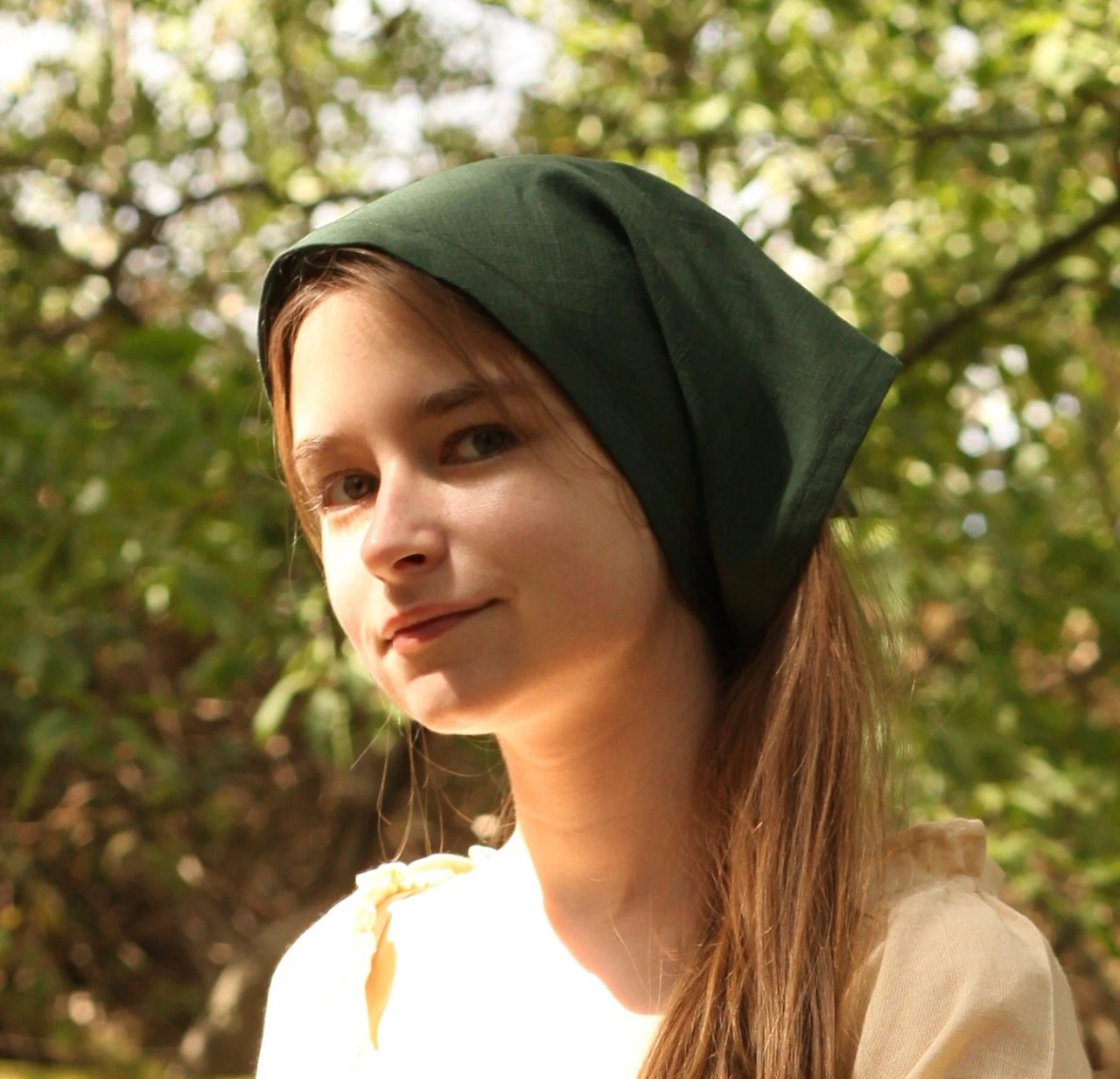 A linen head rag, triangle shape, dimensions appr. 86cm x 40cm
