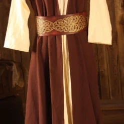Our very new long hooded robe, made of brown cotton. Slits in the sides give you a great range of movement. The big hood is lined and gives you the possibility to travel incognito if want to.