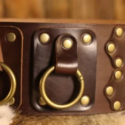 A fantastic medieval style broad belt, made of 3-3.5mm veg tan leather, 10cm/4 inches wide. There are leather scales of the same thickness riveted to the belt giving a very mighty look. We have added 2 snap-hook rings (inner diameter 38mm/1.5 inch) on each side, making it easy to attach all the stuff you want to carry.