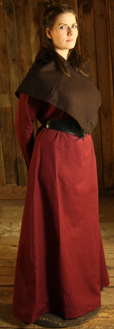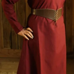 Made from uncombed linen style burgundy cotton, this versatile Medieval inspired dress can be worn alone or teamed with a surcot. Available in a wide choice of sizes, this authentic dress is sure to become a welcomed addition to your Larp wardrobe.