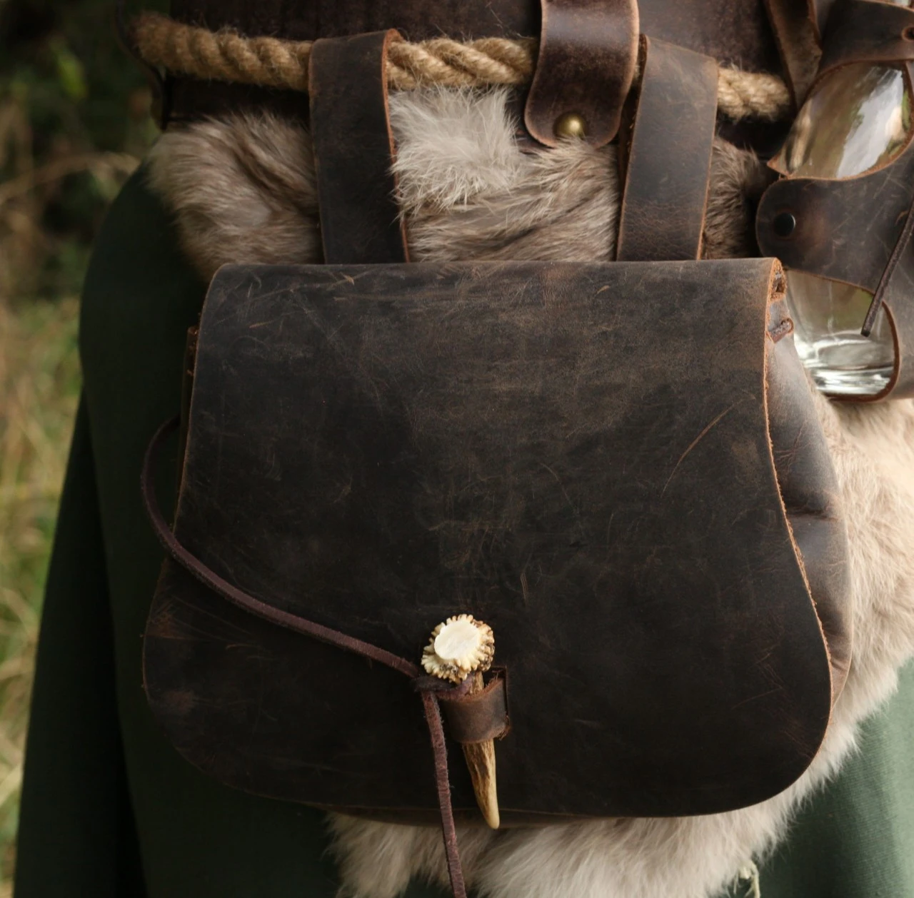 Authentic medieval bag made of genuine high quality leather. The leather we used (the bag is completely built in our workshop) gives the bag an antiqued look. The antler lock is for sure an highlight.