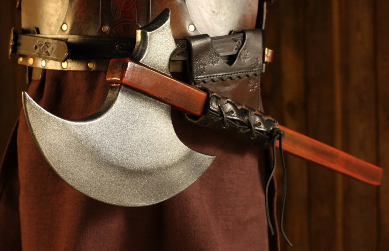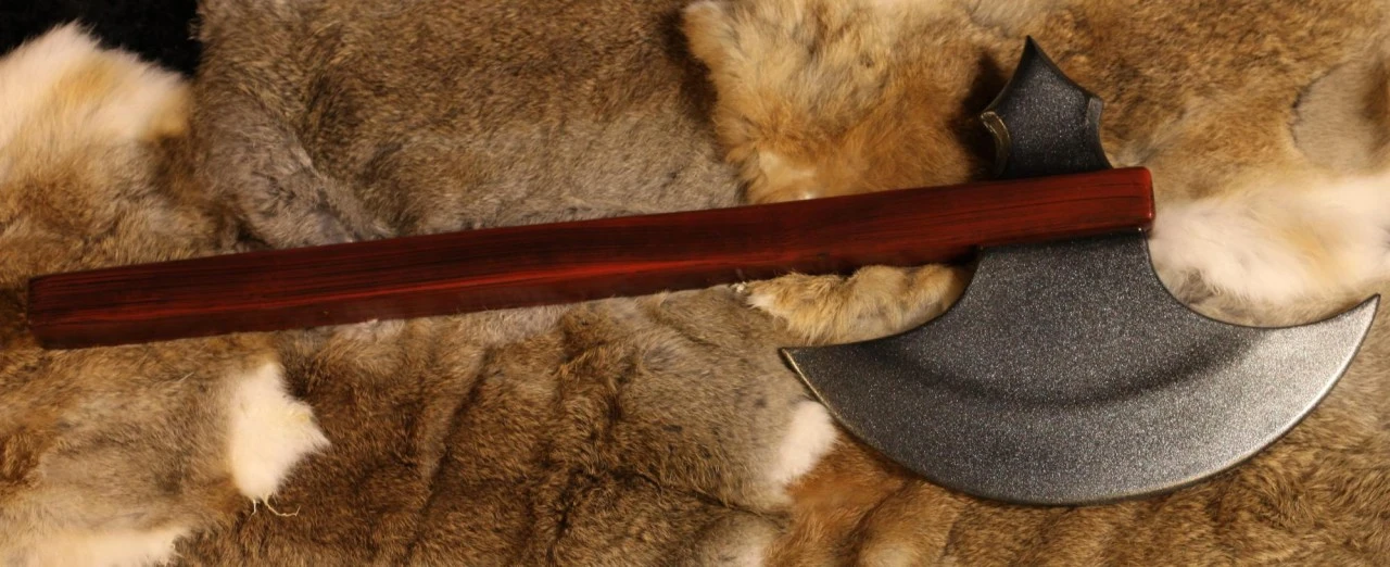 Your Broad Axe sends a goblin clear off his feet, landing in a pile of his buddies. They miscalculated your massive strength, and are reeling backwards on the retreat. So much for supposed alliances. They have learned too late that betraying an Orc of the Black Water would mean death. It’s too bad they won’t be able to share the word with their kin.First hafted axe was created about 6,000 B.C. using birch-tar and raw-hide lashings to fix the blade to its handleMany battle axes doubled as tools and were cheaper to make than swords¶Strong latex coating with a round fibreglass coreStrong Kevlar core tip protectionMade from durable closed cell foam that does not shredHigh safety, approved by the top organizations¶All latex-coated weapons need a certain degree of maintenance. For this we recommend using maintenance silicone which can be purchased separately in the LARP Accessories section. Epic Armoury Maintenance Silicone is an easy, spray-on application, 100% pure and acid-free making it safe to apply. We recommend using Maintenance Silicone on a regular basis. It maintains the latex-coat’s flexibility and prevents it from drying out, keeping the product wear and tear resistant.¶Store your latex weapons flat or on its pommel–NEVER on its tip. Use a simple sheet or towel lining to prevent it from touching a plastic or rubber surface to prevent your weapon from adhering to other products. Keep your weapons in a cool, dry environment. ¶