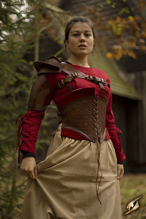 Secure the Shoulder Armour using the sturdy leather straps around the upper arm and the chest. You can wear it on either shoulder or as a pair together. The style is neutral, allowing you to easily match it with other Epic Armoury leather and metal armours when customizing your character’s equipment.