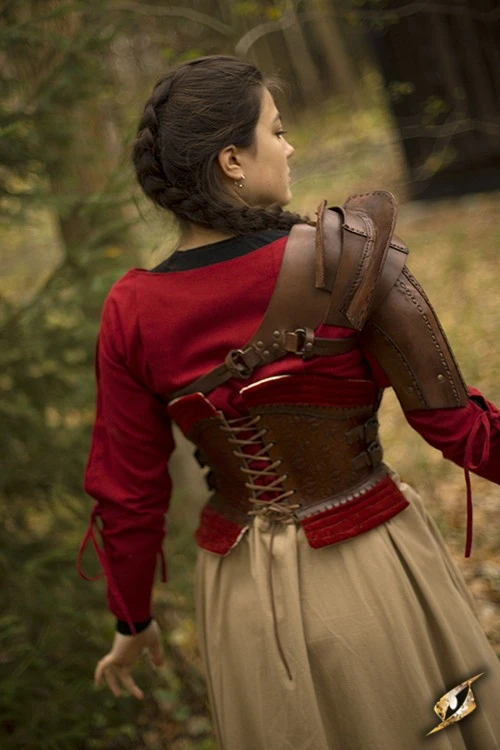 Epic Armoury’s Shoulder Armour is a handsomely crafted piece of armour with shoulder and upper arm protection. Made from vegetable-tanned full-grain leather, this armour features a pauldron and a sword-breaker designed to deflect blows away from the head. Using overlapping and form-fitting plates to add extra strength to the leather, you can expect to use this shoulder guard for a long time with regular leather care. The upper arm guard is embellished with flattened leather cords and toned rivets.