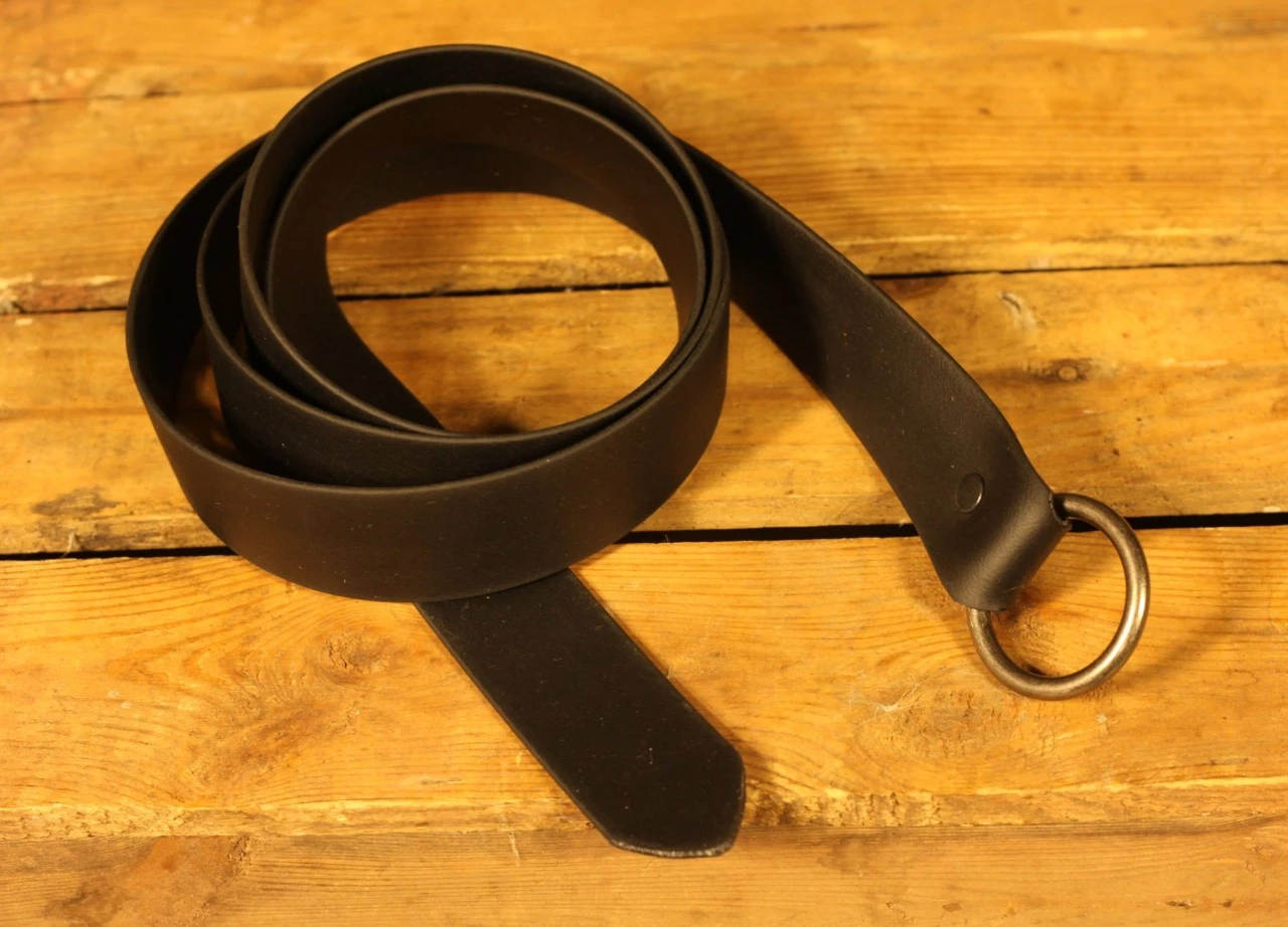 The medieval long ring belt is made of Biothane®. Biothane® is a nylon strap that is coated with a synthetic material.