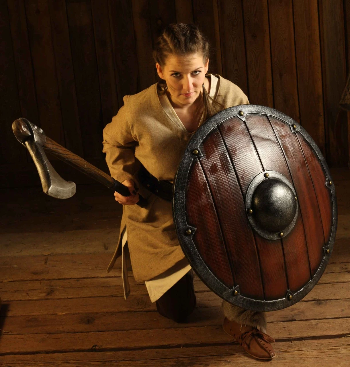 The bestselling Epic Armoury Viking Shield is a round 69 cm latex shield inspired by early pre-10th century vikings and Saxons. With a wooden texture and wood and iron paint finish, this shield is sure to impress your fellow warriors on the battlefield paired with a Viking Axe. Its slight convex shape and iron boss on the front is sure to give you an edge in combat.