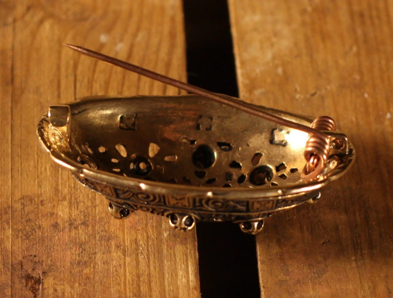 Viking tortoise fibula/brooch (also called oval brooch) made of bronze.